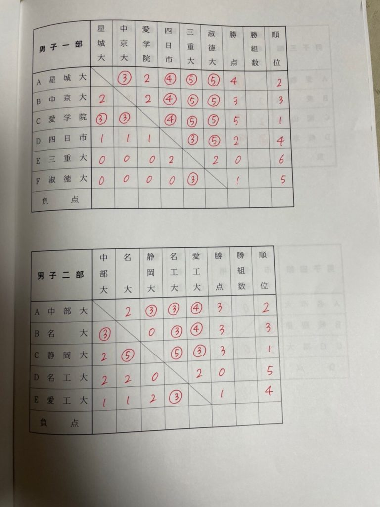 令和4年度春季東海学生ソフトテニス大学対抗リーグ戦大会【男子】結果