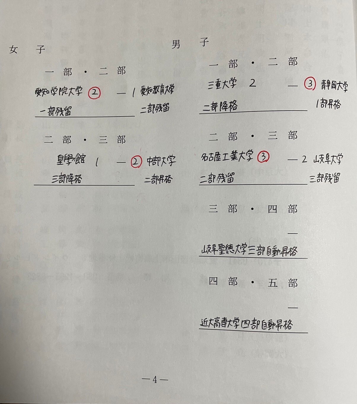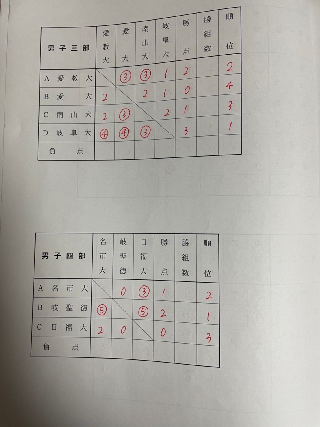 令和4年度春季東海学生ソフトテニス大学対抗リーグ戦大会【男子】結果