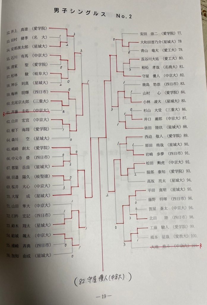 第65回東海学生ソフトテニスシングルス選手権大会 男女 結果