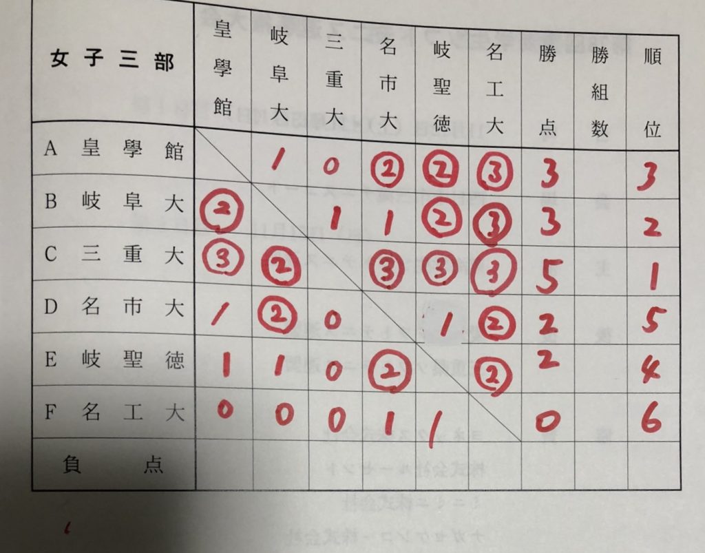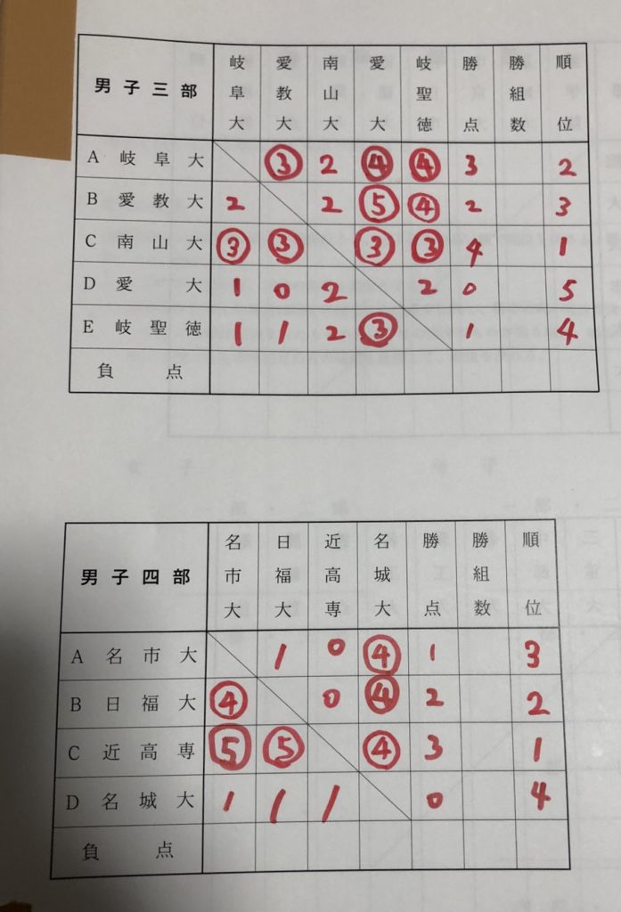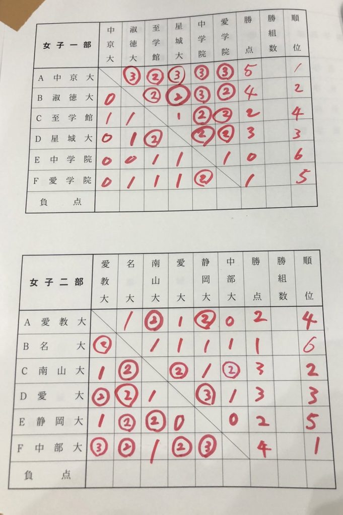 令和4年度秋季東海学生ソフトテニス大学対抗リーグ戦大会【男女】結果