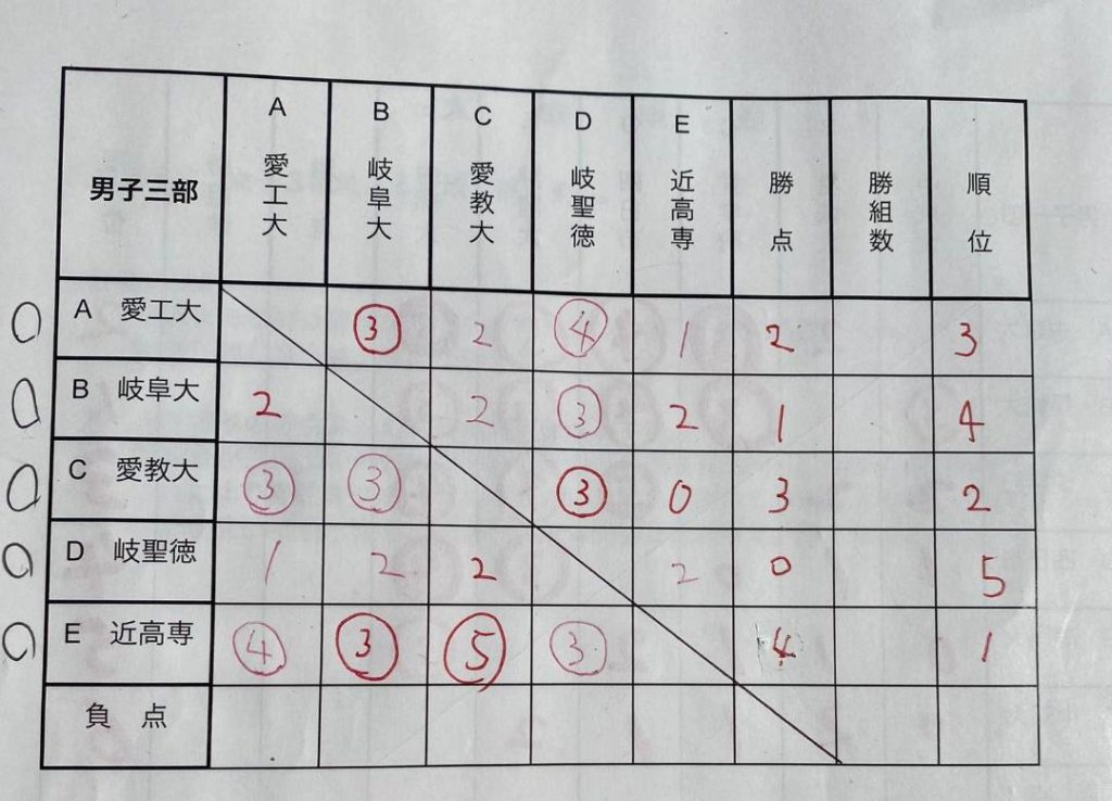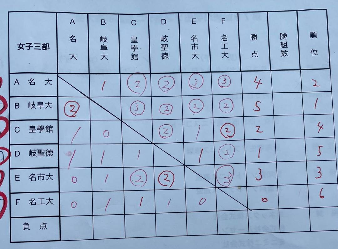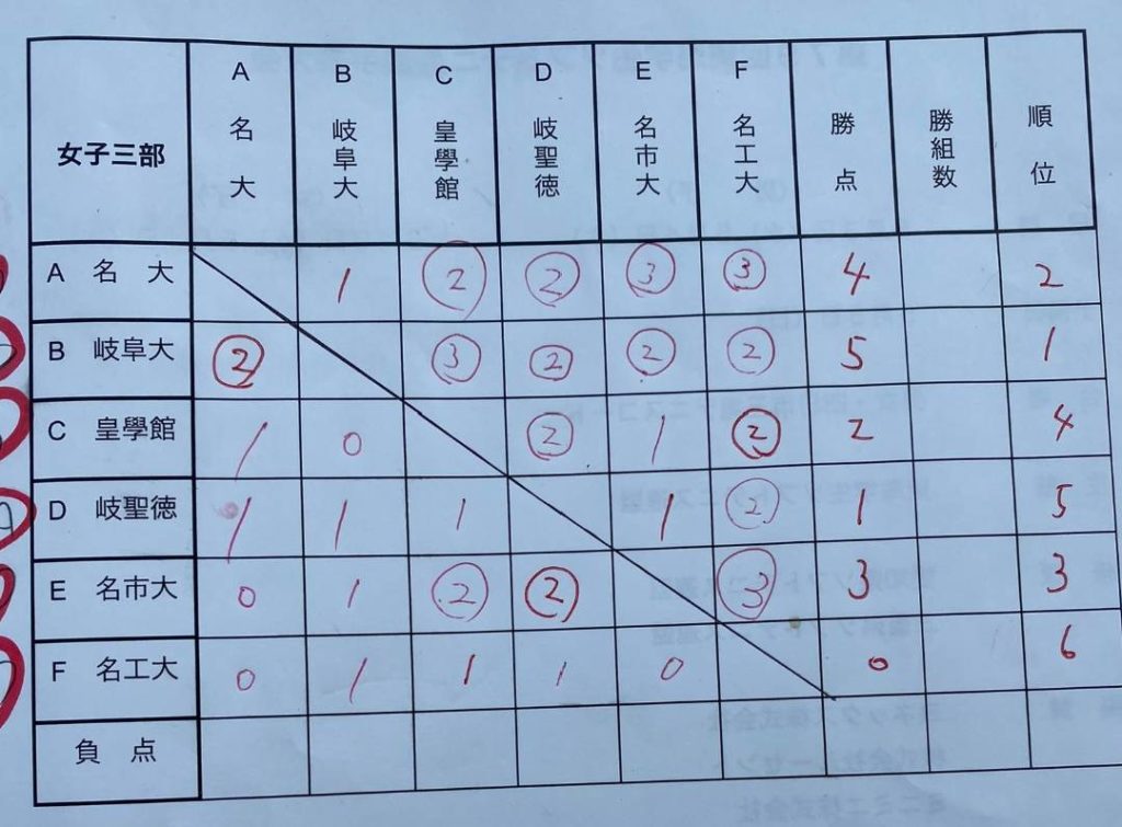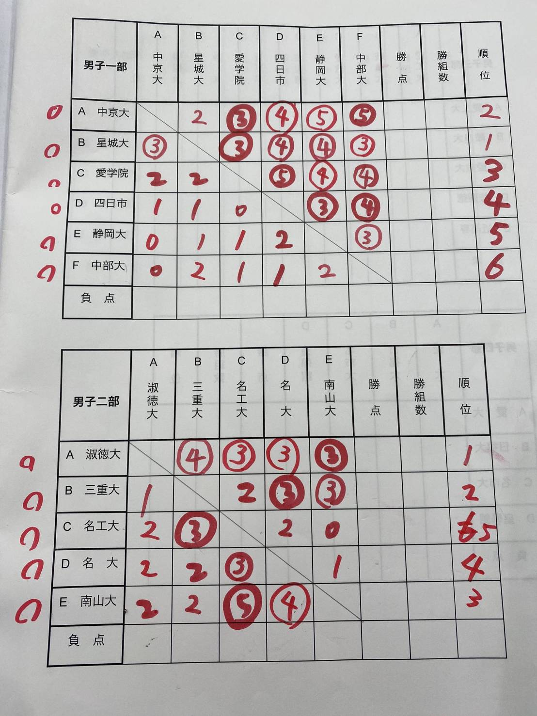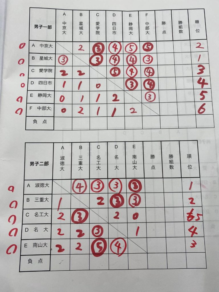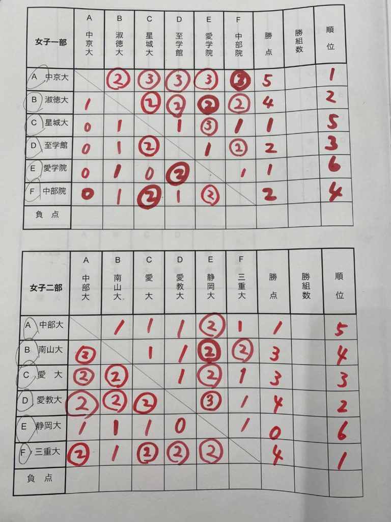 令和5年度春季東海学生ソフトテニス大学対抗リーグ戦大会【男女】結果