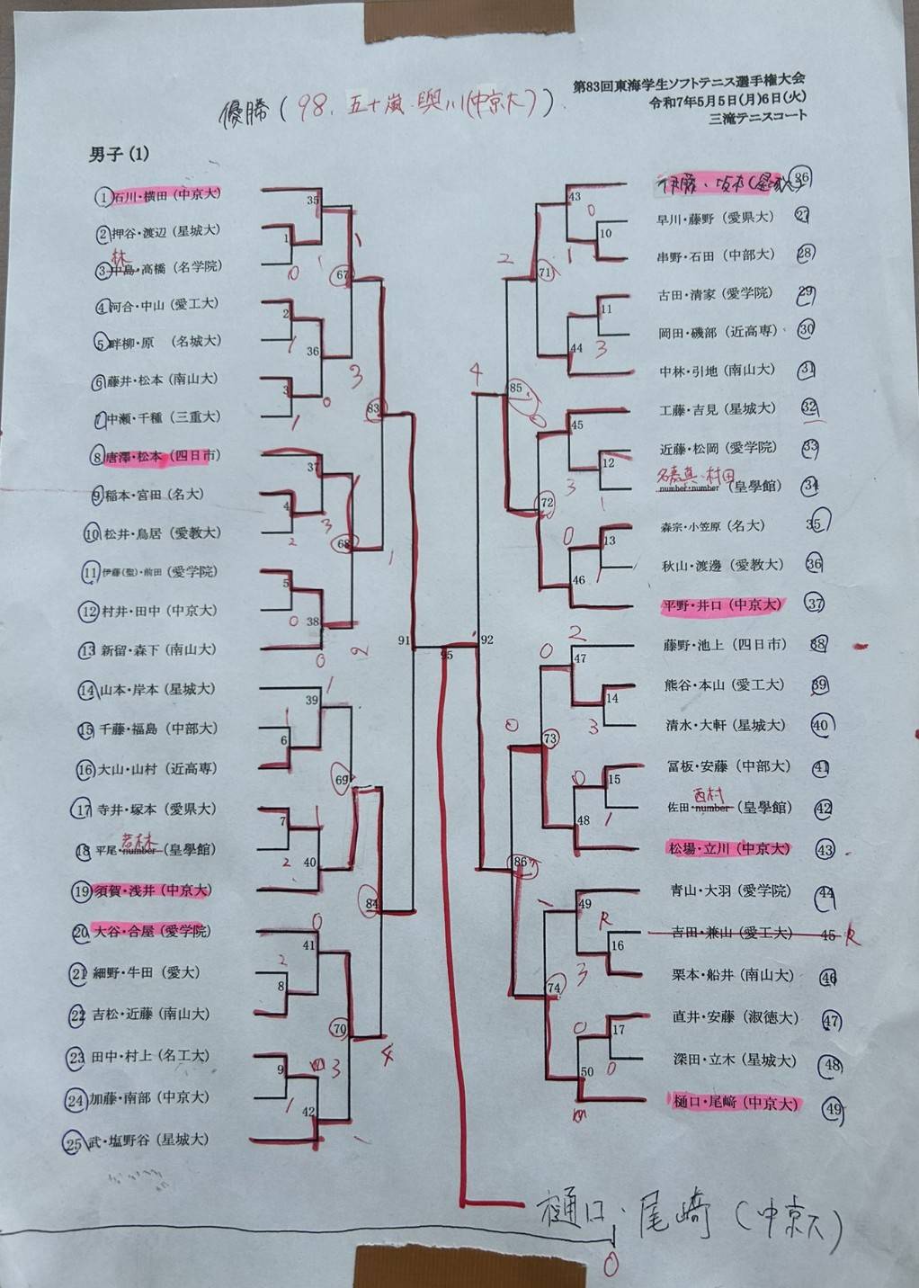 第83回東海学生ソフトテニス選手権大会 男女 結果