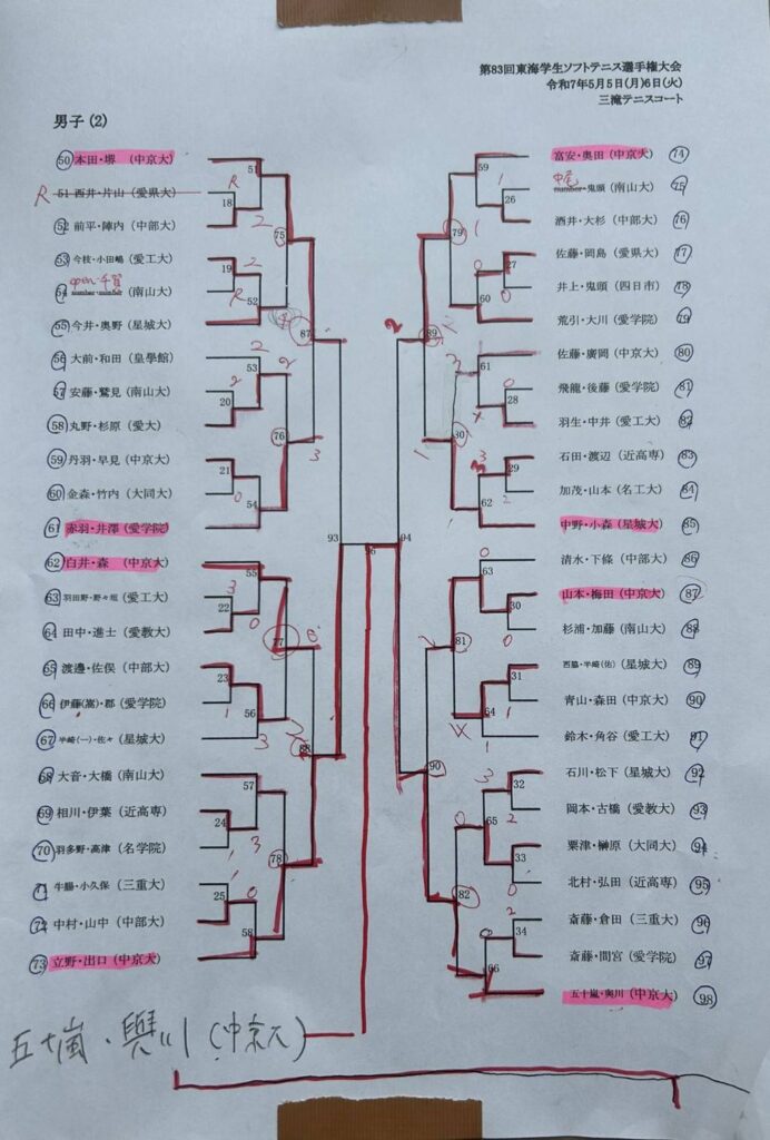 公式戦情報2025年6月12日第83回東海学生ソフトテニス選手権大会 男女 結果