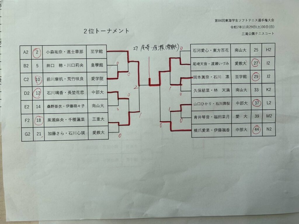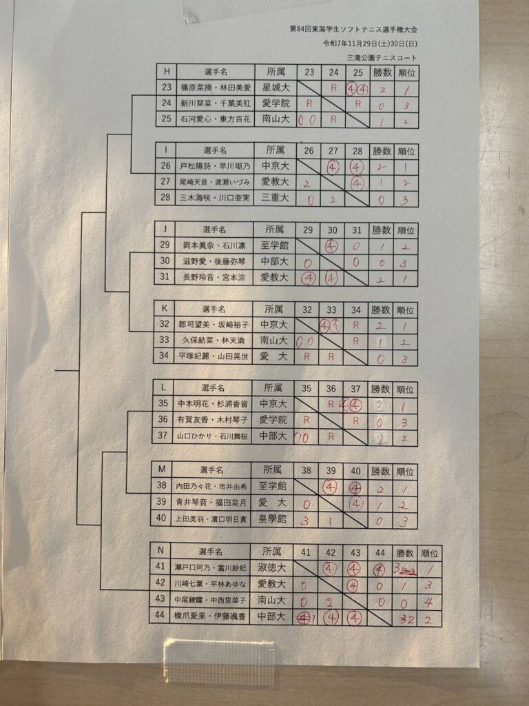 公式戦情報2026年1月12日令和7年度・秋季東海学生ソフトテニス大学対抗リーグ戦大会【男女】結果