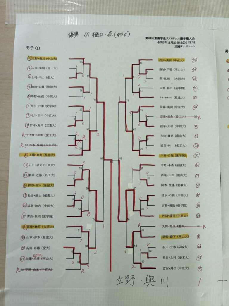 公式戦情報2026年1月12日第84回東海学生ソフトテニス選手権大会 男女 結果
