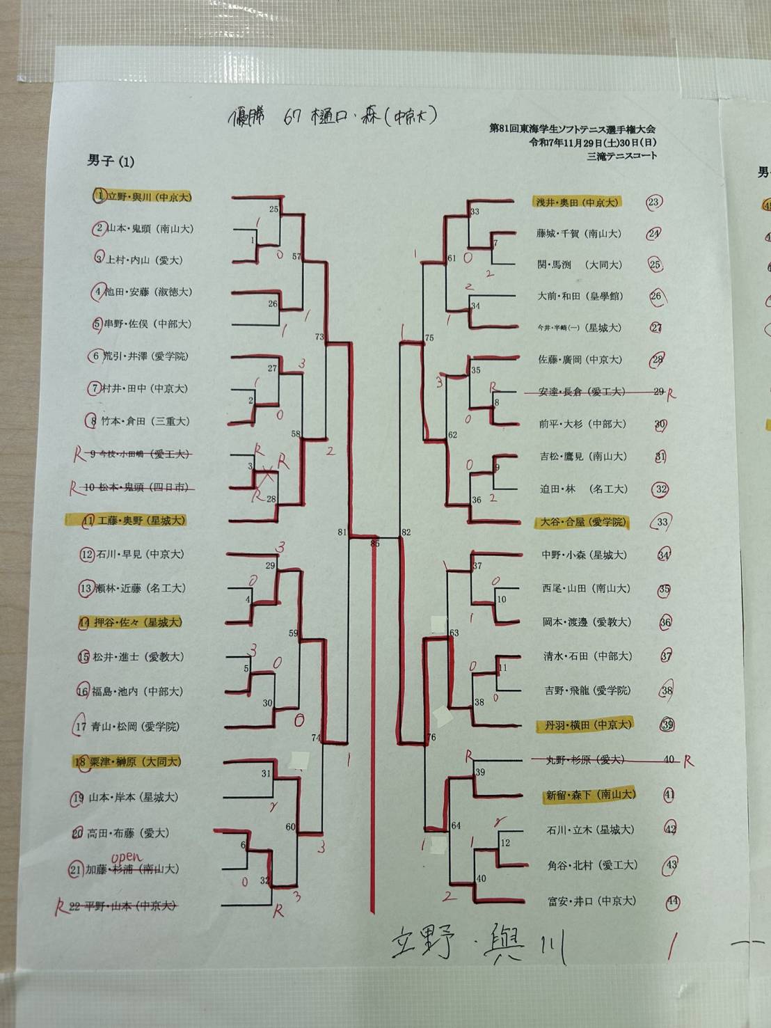 第84回東海学生ソフトテニス選手権大会 男女 結果