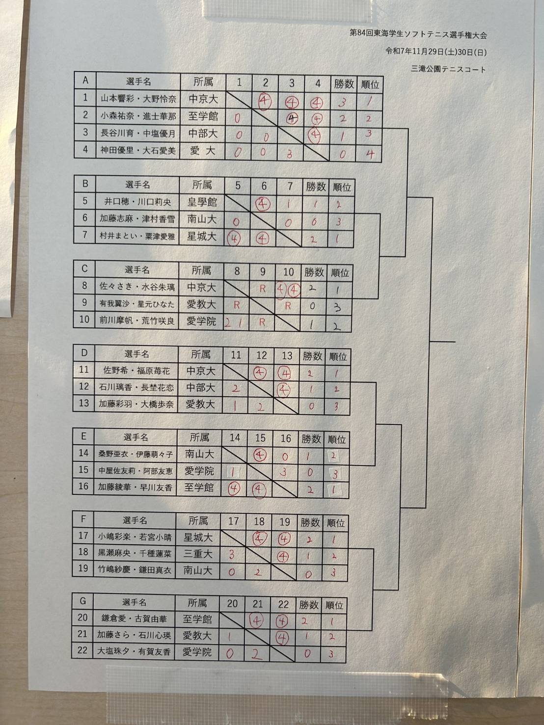 公式戦情報2026年1月12日令和7年度・秋季東海学生ソフトテニス大学対抗リーグ戦大会【男女】結果